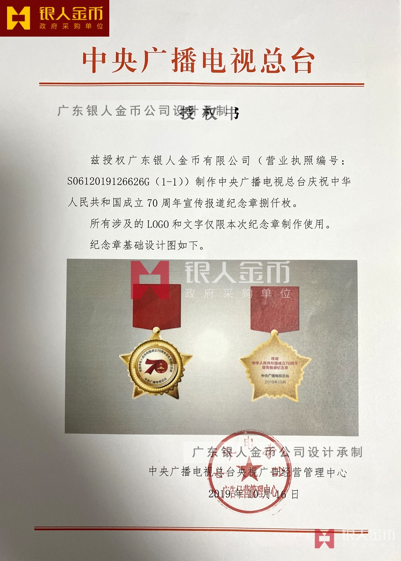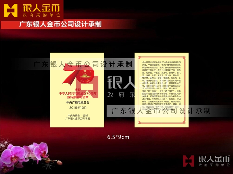 中央廣播電視總臺慶祝中華人民共和國成立70周年宣傳報道紀(jì)念章定制