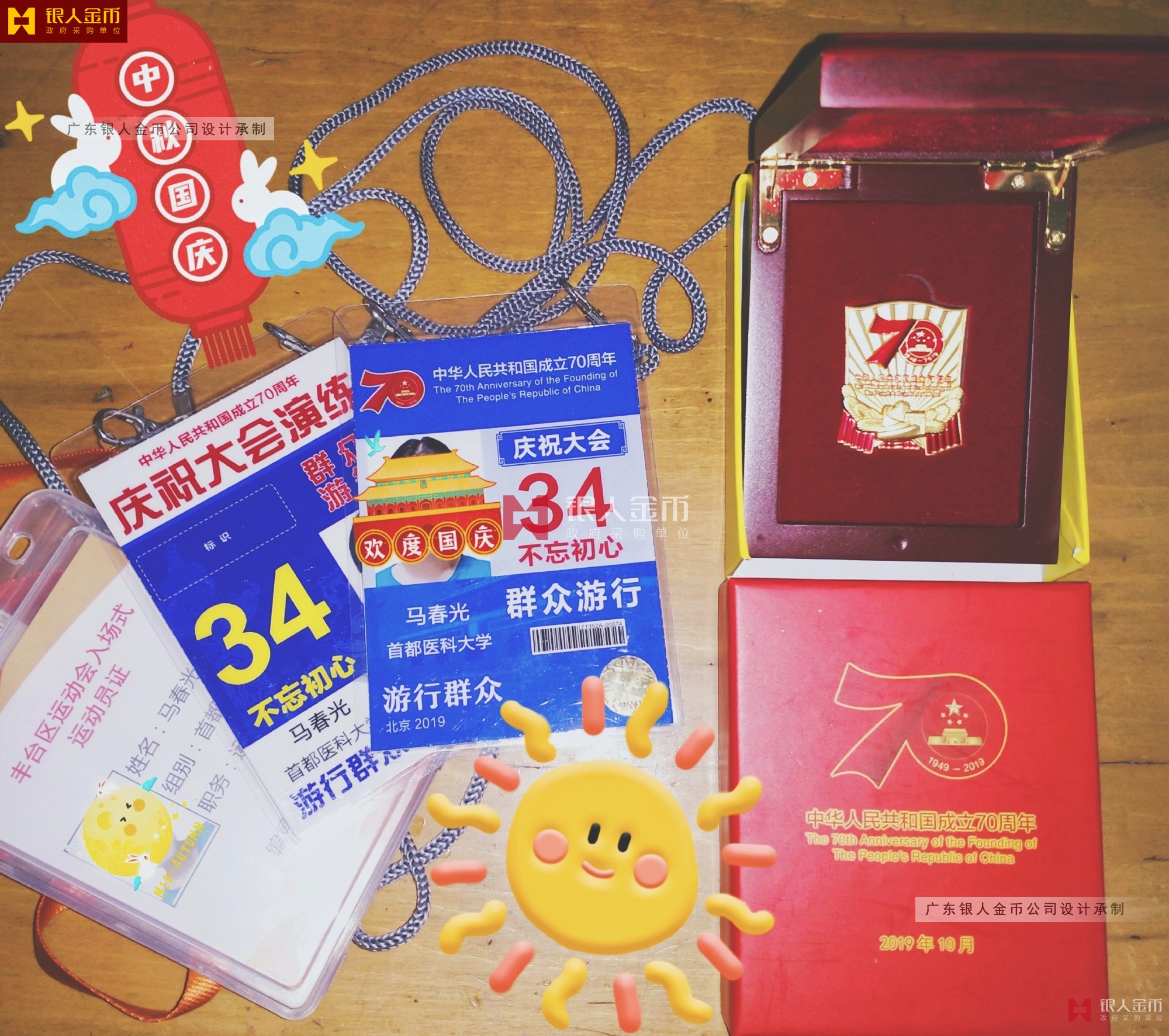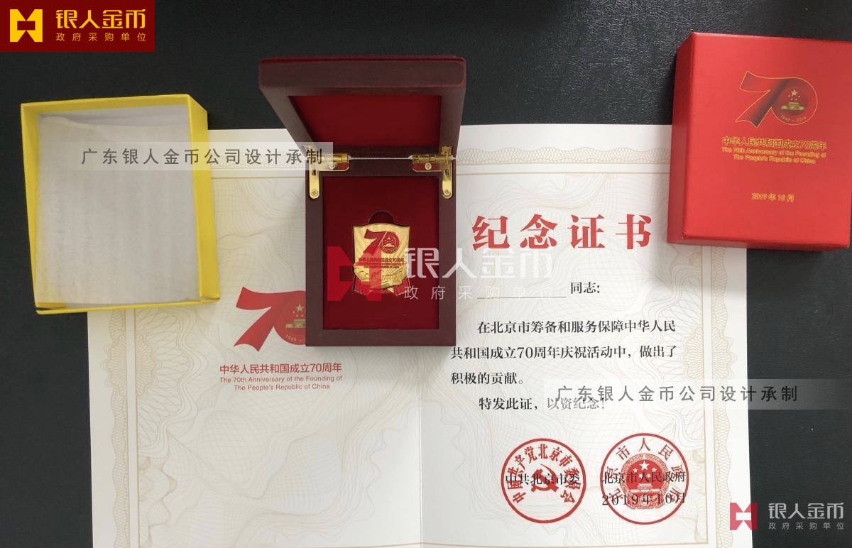 國慶70年慶祝活動留念紀(jì)念章紀(jì)念徽章證書