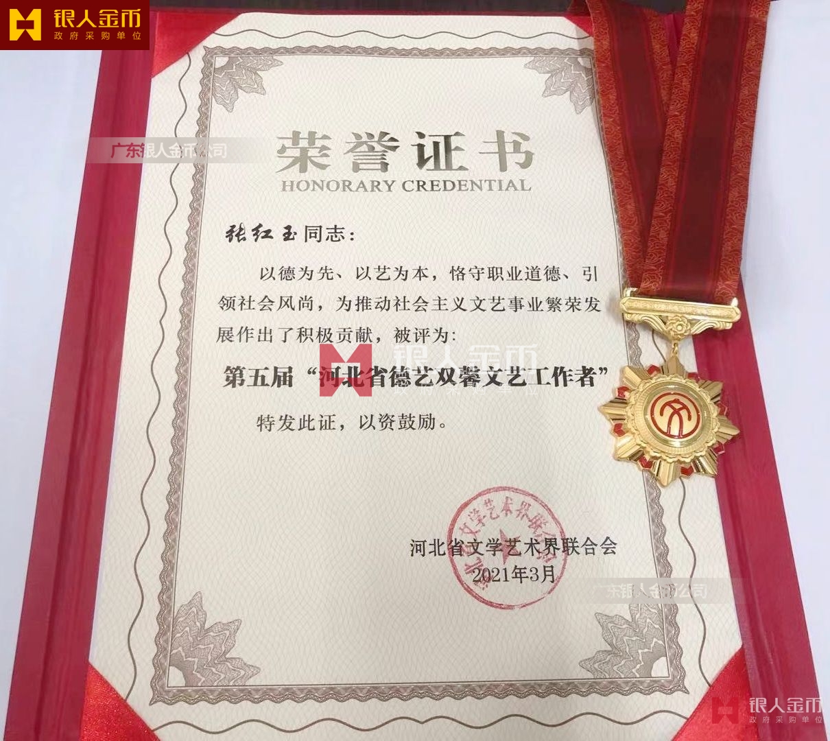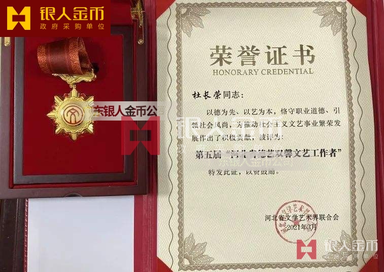 中共中央宣傳部全國中青年德藝雙馨文藝工作者獎?wù)伦C書證章(圖)