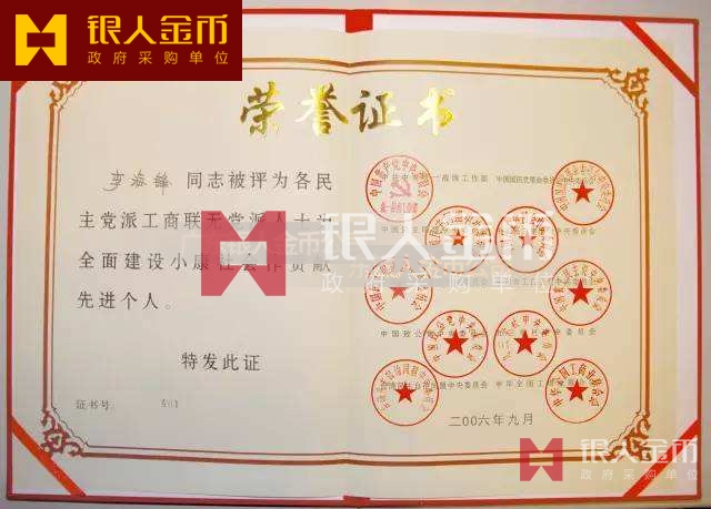 4、國(guó)家級(jí)功勛章、獎(jiǎng)?wù)?、紀(jì)念章、榮譽(yù)稱號(hào)、獎(jiǎng)牌、證章、證書(shū)須報(bào)請(qǐng)中辦、國(guó)辦、中組部同意后行文發(fā)函,指定內(nèi)部特殊供應(yīng),不收費(fèi);