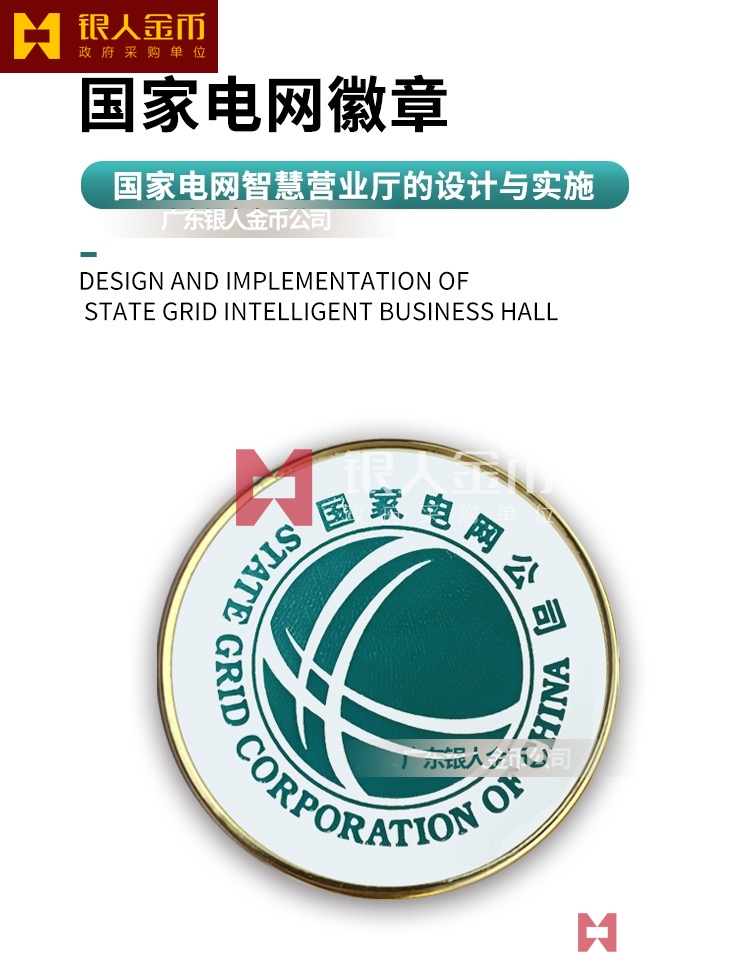 突出反映國家電網(wǎng)特色、彰顯國家電網(wǎng)“大國重器”“頂梁柱”責(zé)任擔(dān)當?shù)膰译娋W(wǎng)公司司徽也正式亮相。會議要求,做好司歌傳播傳唱工作,深入開展司歌傳唱活動、傳播工作,做到員工人人能唱、社會耳熟能詳、輿論廣泛好評;做好司徽推廣應(yīng)用工作,指導(dǎo)員工正確、規(guī)范佩戴司徽,廣泛傳播司徽理念和品牌價值。廣東銀人徽章廠有限公司提供最新版標準國家電網(wǎng)徽章,國家電網(wǎng)徽標,最新版國家電網(wǎng)司徽,國家電網(wǎng)標徽,員工司徽制作生產(chǎn)。是國家電網(wǎng)品牌建設(shè)戰(zhàn)略合作伙伴和品牌標識國家電網(wǎng)司徽徽章工藝標準制定企業(yè)。