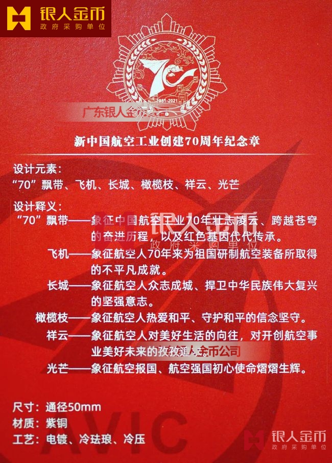 新中國航空工業(yè)創(chuàng)建70周年紀(jì)念章制作設(shè)計定制訂制說明