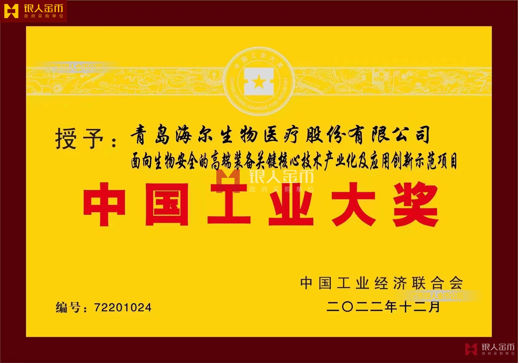 中國工業(yè)聯(lián)合會(huì)中國工業(yè)領(lǐng)域最高獎(jiǎng)項(xiàng)-中國工業(yè)奧斯卡中國工業(yè)大獎(jiǎng)獎(jiǎng)牌獎(jiǎng)杯證書(圖)【廣州銀人獎(jiǎng)牌徽章廠有限公司】