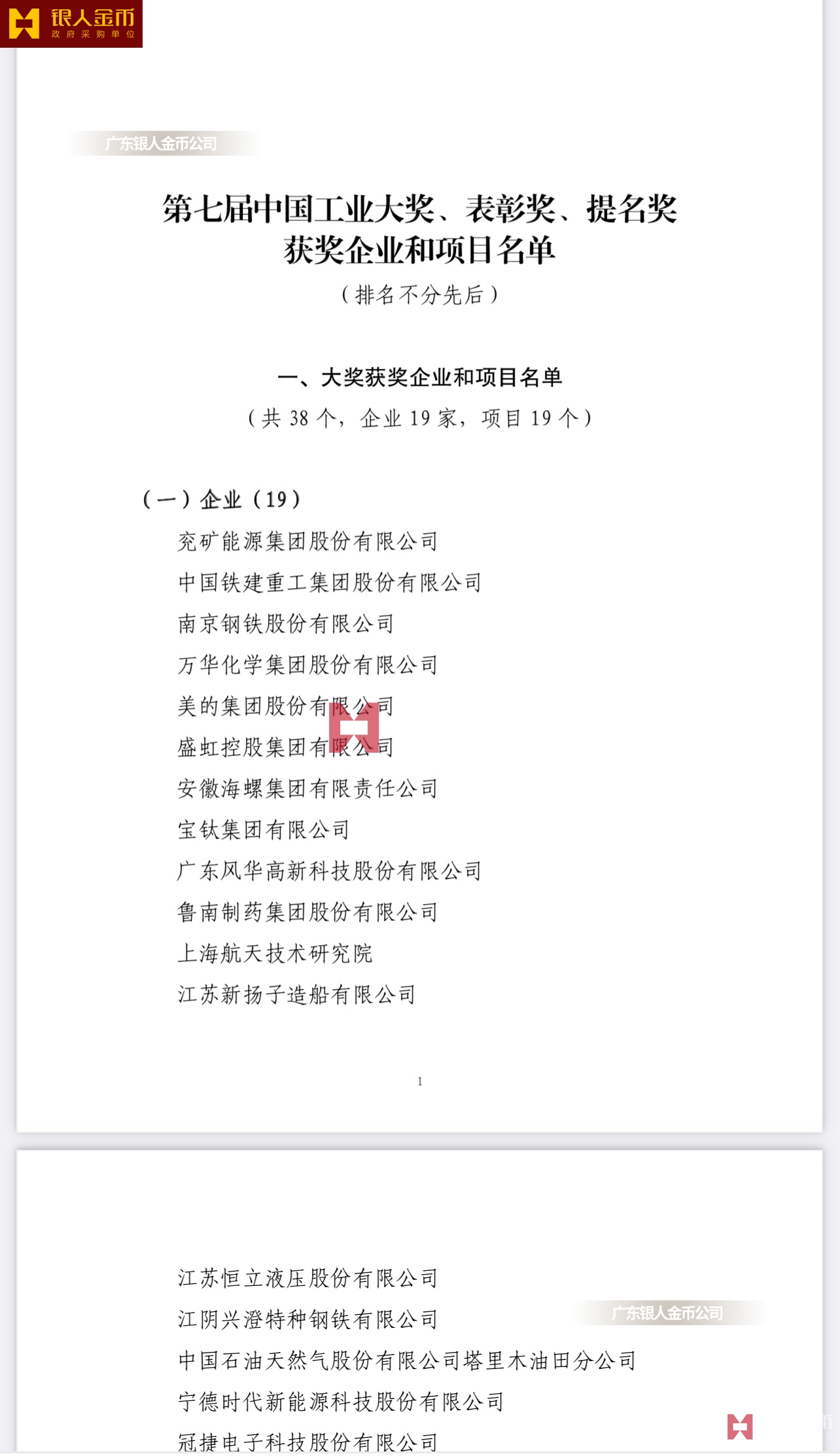 第七屆中國工業(yè)大獎(jiǎng)獲獎(jiǎng)名單