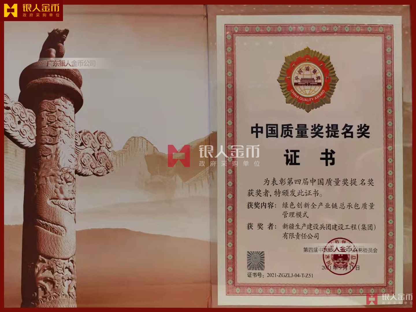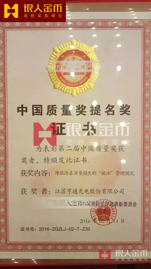 中國(guó)質(zhì)量獎(jiǎng)獎(jiǎng)?wù)陋?jiǎng)牌獎(jiǎng)杯及證書(shū)(圖)【廣州銀人獎(jiǎng)?wù)伦C章廠有限公司】