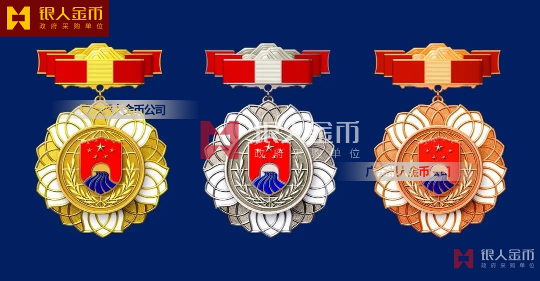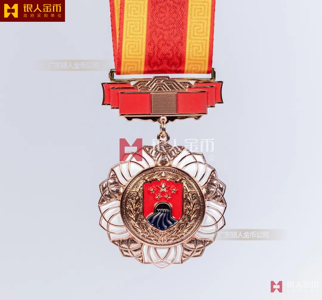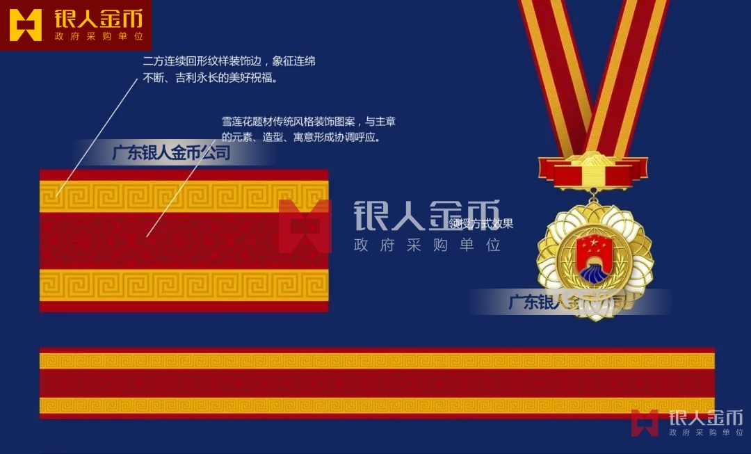 【產(chǎn)品】勛章由飄帶、獎?wù)掠缮椒濉⒓o(jì)念章由如意等元素構(gòu)成,金銀銅色條分別代表戍邊工作年限累計滿30年、20年、10年。