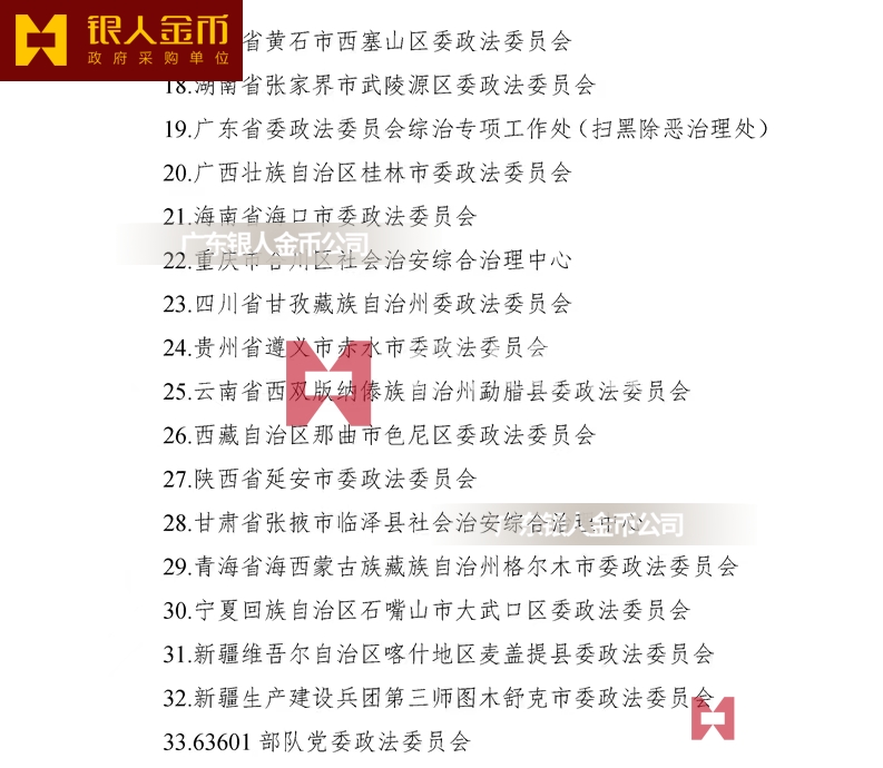【黨徽佩戴】適用——各省、自治區(qū)、直轄市黨委組織部,中央和國家機關各部委、各人民團體組織人事部門,新疆生產(chǎn)建設兵團黨委組織部,各中管金融企業(yè)黨委,部分國有重要骨干企業(yè)(黨組)黨委,部分高等學校黨委,中央軍委政治工作部組織局。組織部確定的生產(chǎn)制作、銷售購買、定制采購黨員徽章生產(chǎn)廠家和黨徽正規(guī)購買渠道與訂制廠商。【政府定點采購單位】 【央企國營中標企業(yè)】國資委黨委組織部監(jiān)制黨員徽章(黨徽)國資委機關黨委監(jiān)制黨員徽章(黨徽)國資委黨建工作局監(jiān)制黨員徽章(黨徽)國資委監(jiān)制黨員徽章(黨徽)