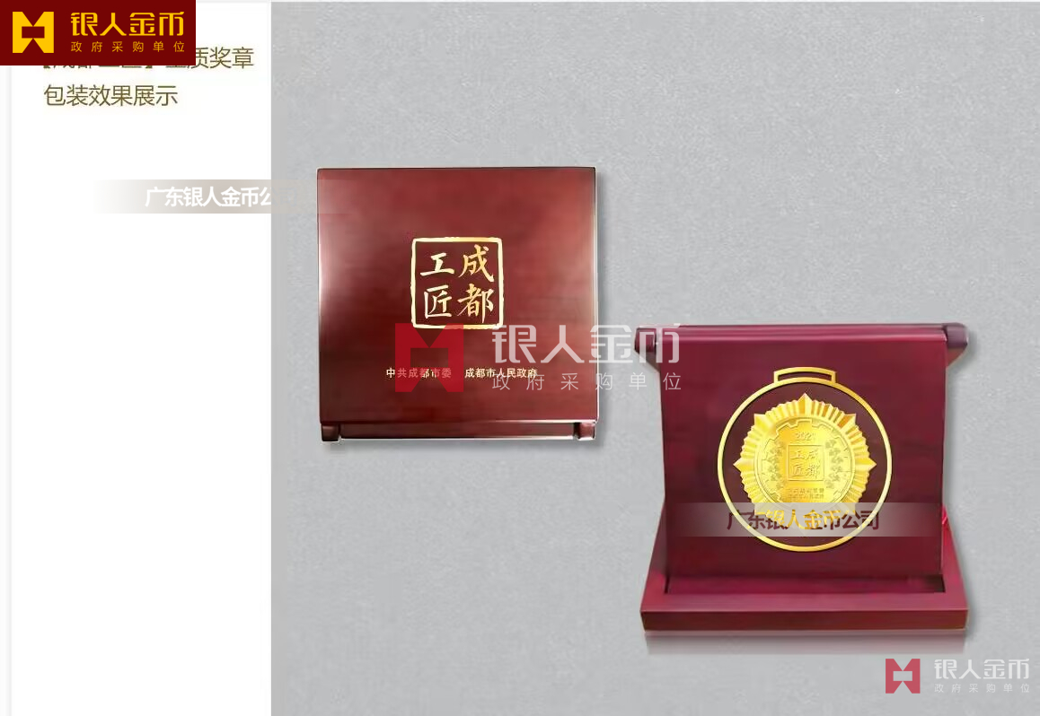 中共成都市委市政府“成都工匠”金質(zhì)獎(jiǎng)?wù)轮谱?純金獎(jiǎng)牌定做純金獎(jiǎng)?wù)掠喼婆c證書定制(圖)