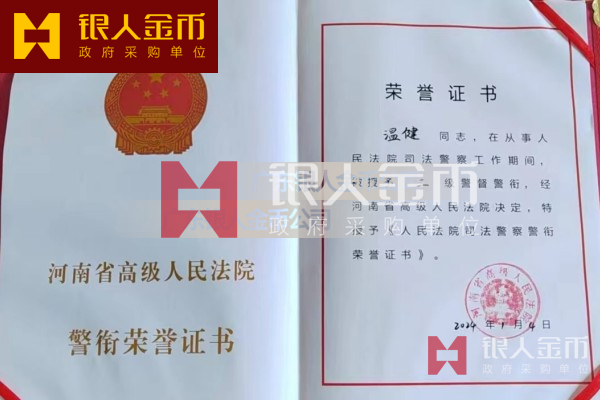 河南省高級(jí)人民法院司法警察警銜榮譽(yù)章獎(jiǎng)?wù)录o(jì)念章勛章獎(jiǎng)牌及榮譽(yù)證書(圖)