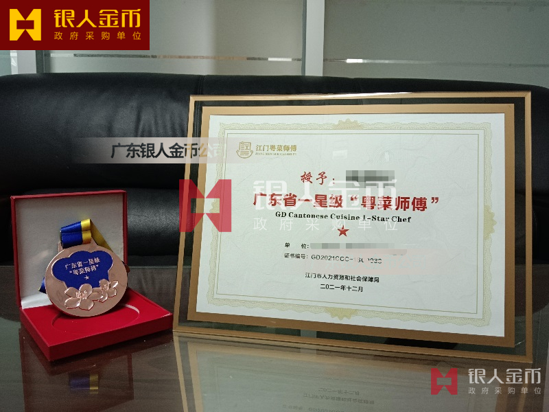 廣東省一二三星級“粵菜師傅“金質獎章獎牌銀質獎章獎牌銅質獎章獎牌(圖)-【高級獎牌高檔獎牌設計制作廠家】