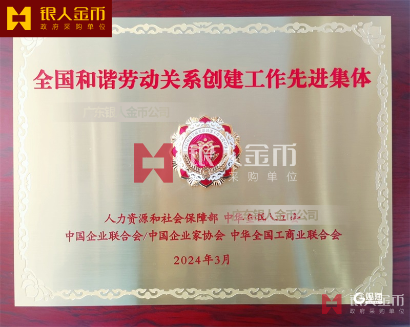 全國和諧勞動(dòng)關(guān)系創(chuàng)建工作先進(jìn)集體”稱號(hào)獎(jiǎng)牌、證書