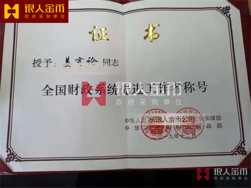 國家財(cái)政部全國財(cái)政系統(tǒng)先進(jìn)集體和先進(jìn)工作者獎(jiǎng)牌獎(jiǎng)?wù)伦C書(圖)