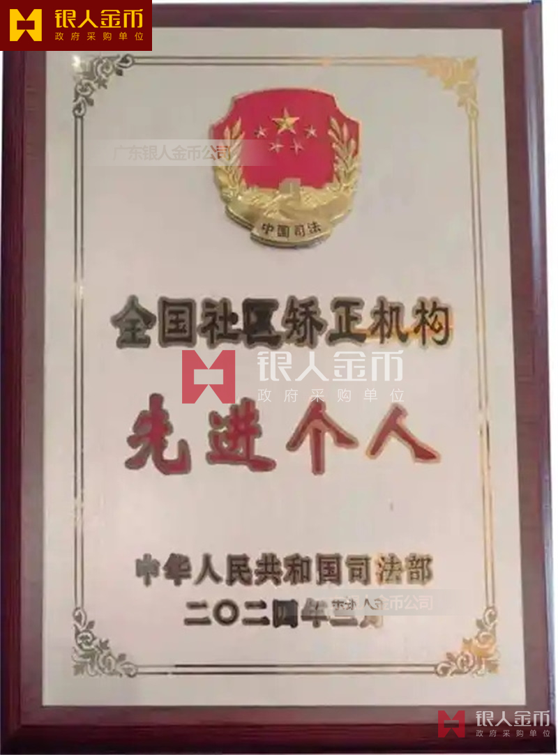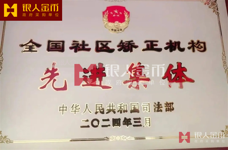 司法部全國社區(qū)矯正機(jī)構(gòu)先進(jìn)個人和先進(jìn)集體獎牌證書(圖)