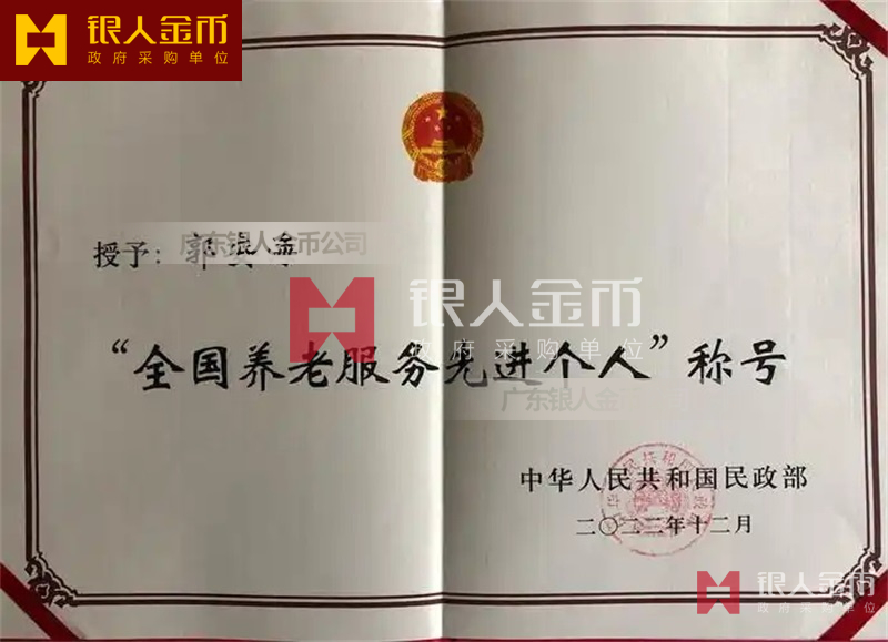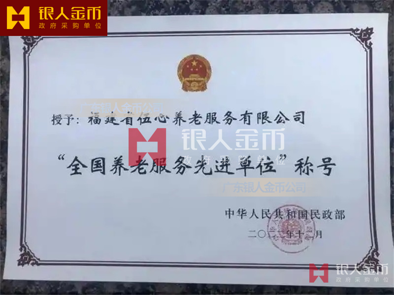 中華人民共和國民政部全國養(yǎng)老服務先進單位獎牌證書和先進個人獎章勛章紀念章證書(圖)