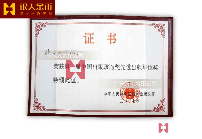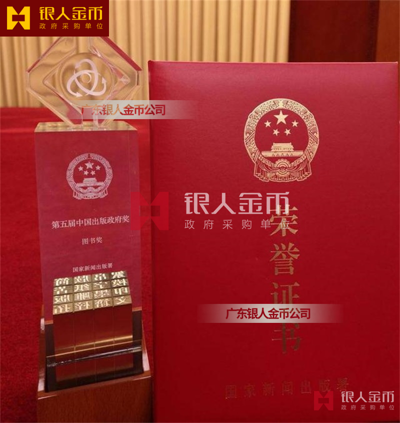 國家新聞出版署中國政府出版獎先進出版單位獎牌證書與國書獎獎牌獎杯證書(圖)