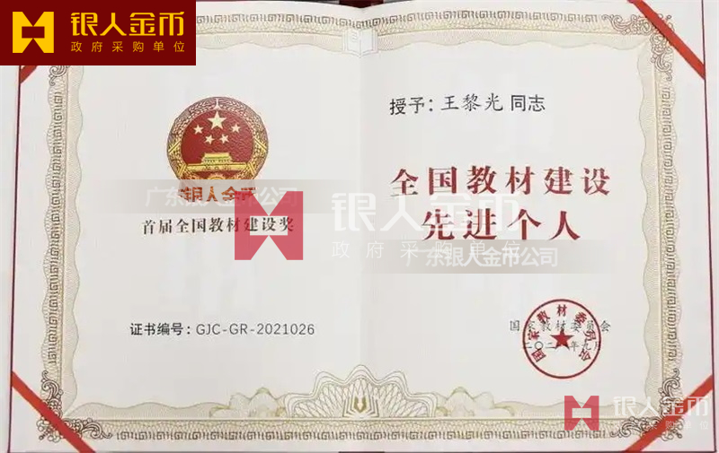 國家教材委員會全國教材建設(shè)先進集體和全國優(yōu)秀教材獎與先進個人獎?wù)伦C書勛章紀念章(圖)