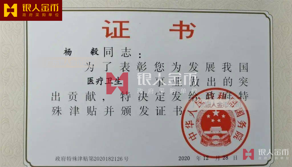 中華人民共和國國務(wù)院政府特殊津貼證書(圖)