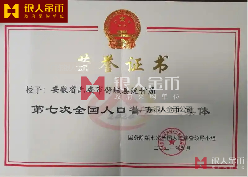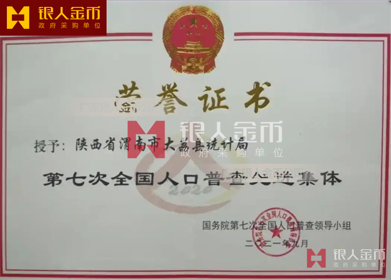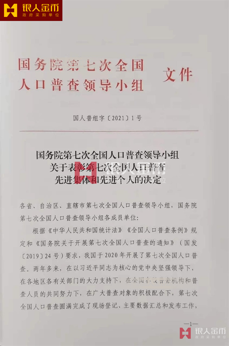 國(guó)務(wù)院第七次全國(guó)人口普查領(lǐng)導(dǎo)小組辦公室第七次全國(guó)人口普查先進(jìn)集體獎(jiǎng)牌證書和先進(jìn)個(gè)人獎(jiǎng)牌證書(圖)