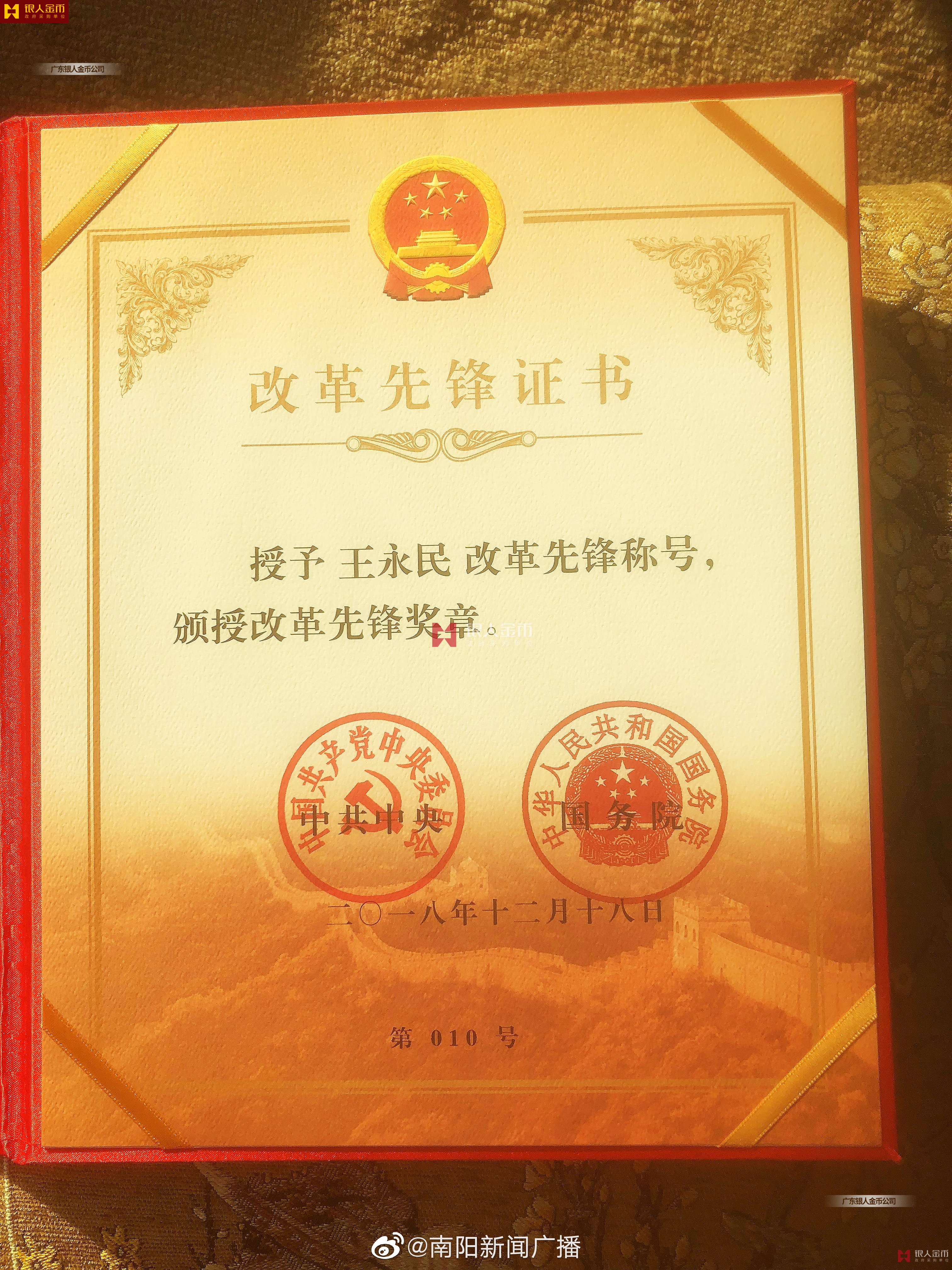 中共中央、國務(wù)院授予頒發(fā)改革開放40周年獎?wù)?、改革先鋒榮譽稱號、改革先鋒功勛章、改革先鋒勛功章、改革先鋒勛章、改革先鋒獎?wù)?、改革先鋒紀(jì)念章及改革先鋒獎牌、改革先鋒證書(圖)