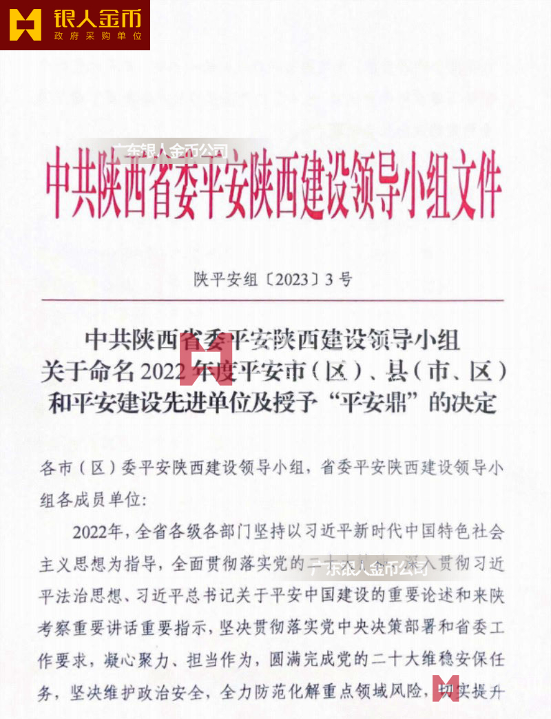 中共陜西省委政法委員會(huì)金鼎銀鼎銅鼎平安鼎和平安市區(qū)縣獎(jiǎng)牌證書(圖)中共陜西省委平安陜西建設(shè)工作領(lǐng)導(dǎo)小組辦公室監(jiān)制頒發(fā)頒授