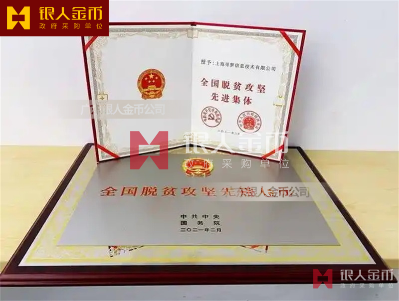 中共中央、國務院全國脫貧攻堅先進集體獎牌證書和全國脫貧攻堅先進個人獎章證書(圖)