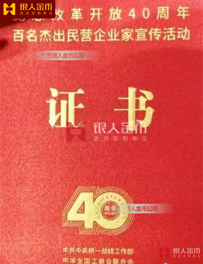 中共中央統(tǒng)戰(zhàn)部全國(guó)工商聯(lián)改革開(kāi)放40年百名杰出民營(yíng)企業(yè)家獎(jiǎng)?wù)录o(jì)念章獎(jiǎng)牌證書(shū)(圖)