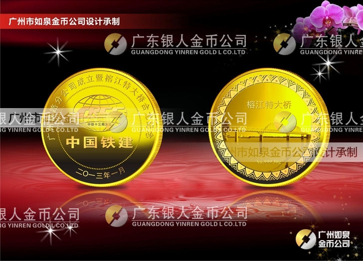 定制中國鐵建大橋合龍紀(jì)念金幣定制純金紀(jì)念幣