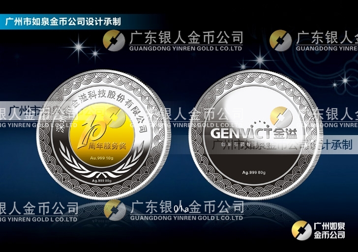 深圳金溢公司十周年慶制作銀鑲金紀(jì)念幣