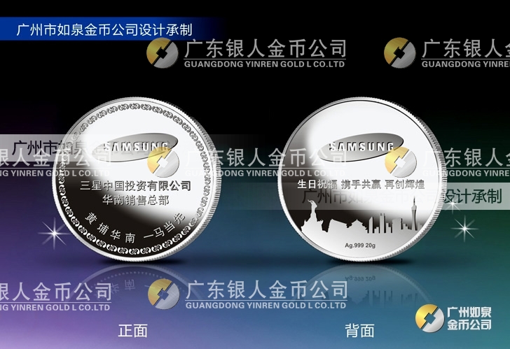 訂做三星電子中國(guó)公司純銀紀(jì)念幣,加工銀幣