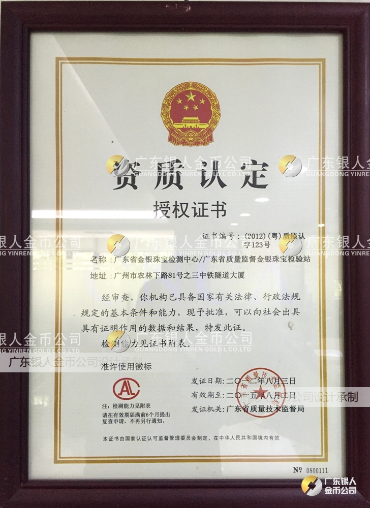 廣東銀人金幣公司承接客戶個性化定制的金銀幣、金銀章、金銀條、金銀牌、金銀盤均由國家質(zhì)監(jiān)部門、嚴(yán)格檢測、權(quán)威鑒定: