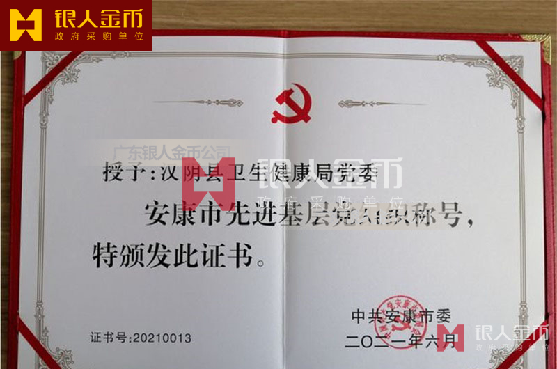 中共安康市委組織部?jī)蓛?yōu)一先優(yōu)秀共產(chǎn)黨員、優(yōu)秀黨務(wù)工作者和先進(jìn)基層黨組織獎(jiǎng)牌獎(jiǎng)?wù)伦C書(圖)