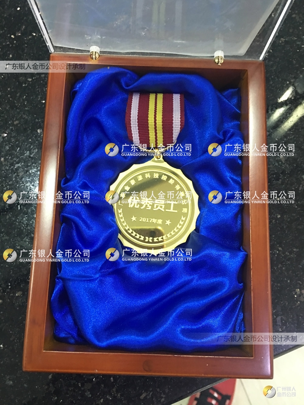 把公司的美容儀器設(shè)備產(chǎn)品模型融入到2017年度優(yōu)秀員工獎(jiǎng)牌的圖案中,配高檔實(shí)木水晶盒。
