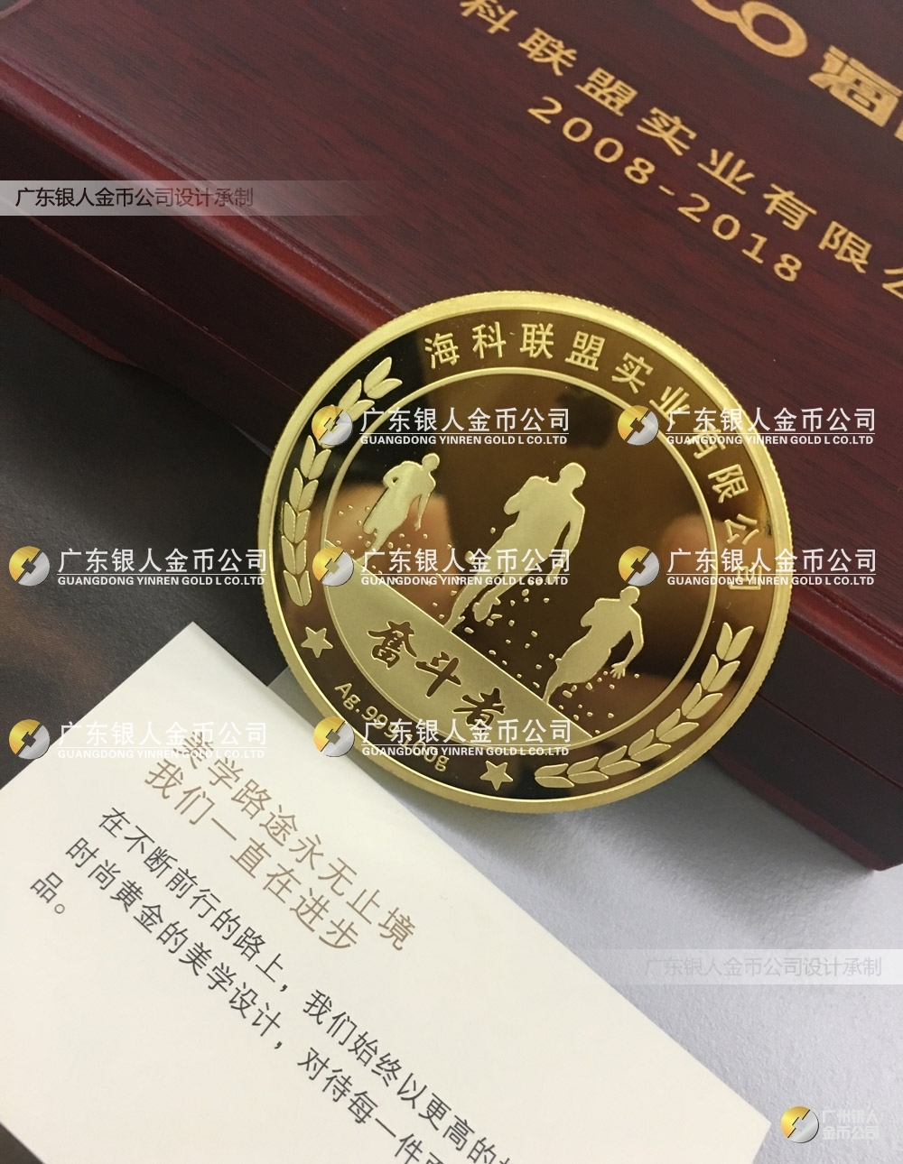 大連??坡?lián)盟主攻房地產(chǎn)、醫(yī)院、樓盤導向標識、標牌工程項目,委托我司設(shè)計制作公司10周年金銀紀念幣定制。