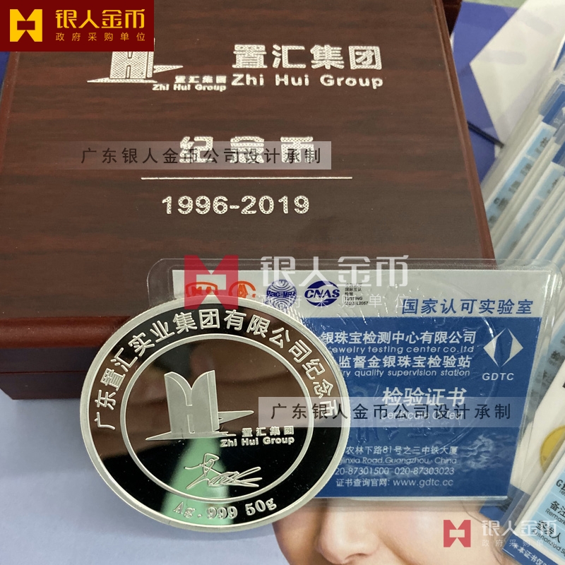 置匯實業(yè)集團公司成立23周年紀念慶典、為年會活動饋贈公司紀念銀幣、銀質紀念幣。