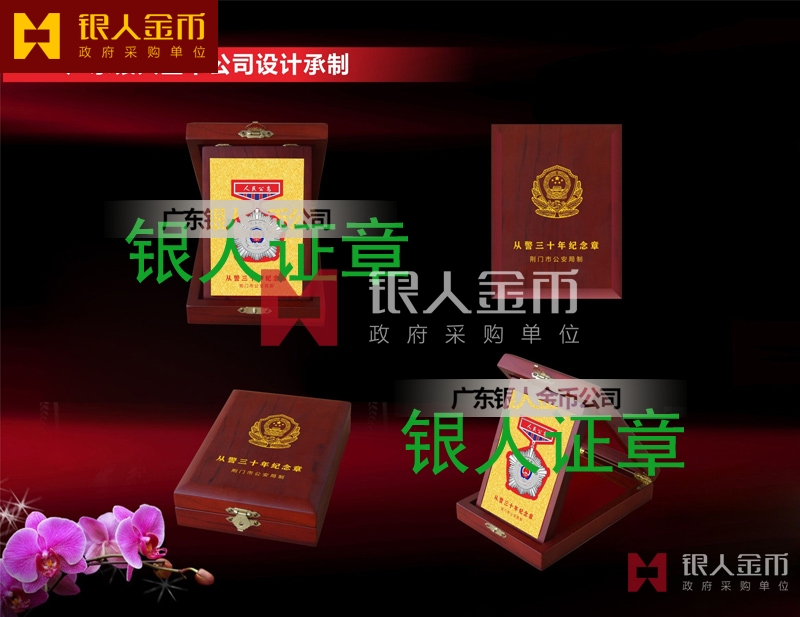 湖北荊門市公安局警察離休紀念章_民警周年紀念章定制_入警周年紀念章定制_干警周年紀念章定制