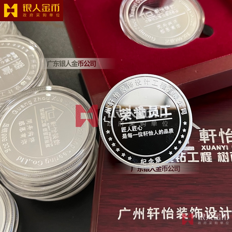 廣州軒怡裝飾公司周年紀念活動表彰獎勵優(yōu)秀員工足銀榮譽紀念章定制_優(yōu)秀員工銀質(zhì)徽章定制_榮譽員工純銀紀念章定制_集團榮譽員工銀制證章定制_純銀紀念胸章定制_純銀獎牌定制