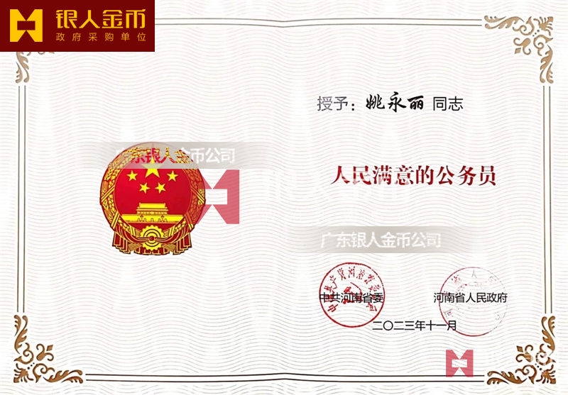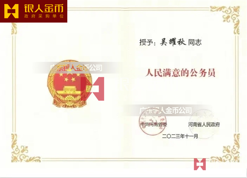 【公務(wù)員獎(jiǎng)勵(lì)證書(shū)制作】 廣東銀人金幣公司-獎(jiǎng)勵(lì)證書(shū)定制