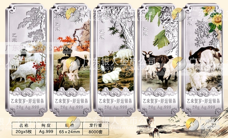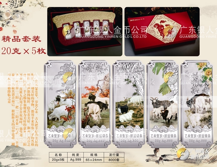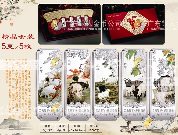 【Au.999純銀羊年賀歲銀條重量規(guī)格】 5克x5根、10克x5根、20克x5根盒裝、套裝